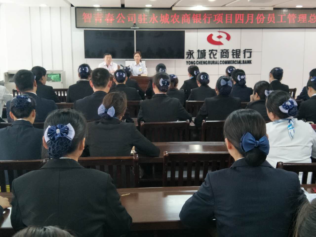 智青春公司驻永城农商银行项目四月份员工管理总结会议